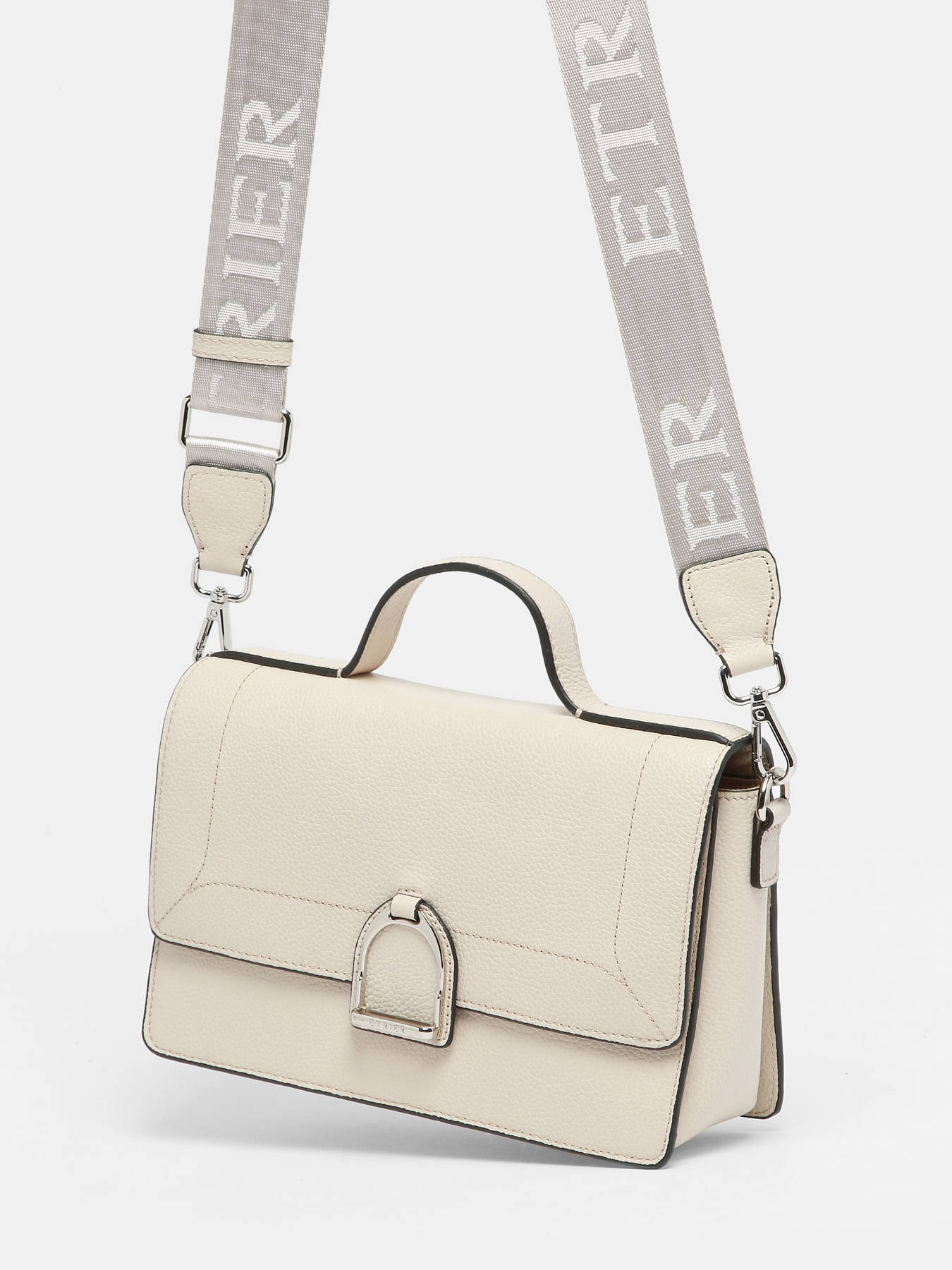 Le sac bandoulière ETRIER de la ligne ALTESSE, en cuir de vachette, se distingue comme le plus grand format de ce modèle. Doté d'une poche à l'arrière et d'une fermeture à rabat orné de l'étrier en métal emblématique de la maison, il se sécurise avec une pression aimantée. Sa anse en cuir et sa large bandoulière amovible en toile brodée du logo ETRIER ton sur ton peut se porter de deux façons différentes. À l'intérieur, vous trouverez deux compartiments comportant deux poches plaquées et une poche éclair, assurant une organisation optimale. Disponible en plusieurs coloris saisonniers et en deux tailles plus petites.